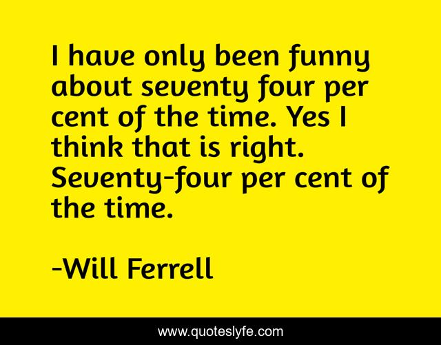 This page presents the quote "I have only been funny about seventy four per cent of the time. Yes I think that is right. Seventy-four per cent of the time.". Author of this quote is Will Ferrell. This quote is about time, think, seventy,.