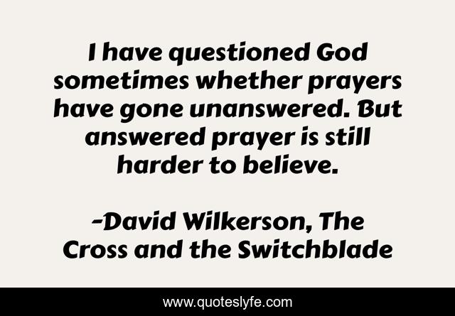 "David Wilkerson, The Cross and the Switchblade Quotes." Quoteslyfe.com, 2025. Fri. 05 Dec. 2025. <https://www.quoteslyfe.com/quote/I-have-questioned-God-sometimes-whether-prayers-114537>.