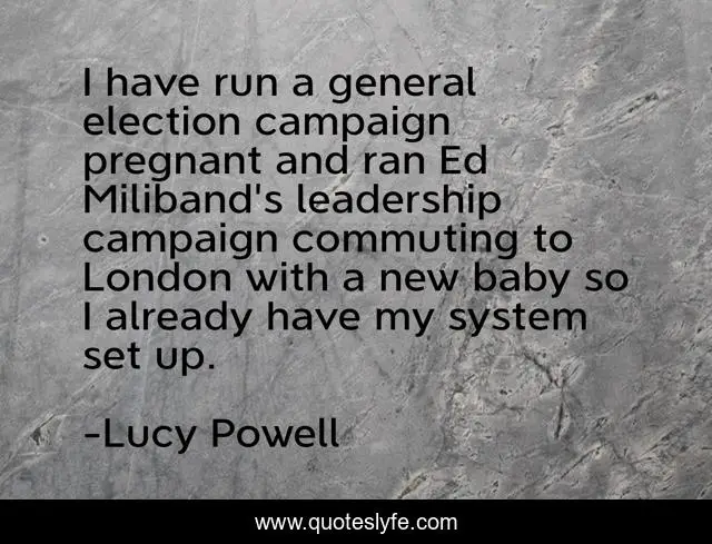This page presents the quote "I have run a general election campaign pregnant and ran Ed Miliband's leadership campaign commuting to London with a new baby so I already have my system set up.". Author of this quote is Lucy Powell. This quote is about baby, london, election,.