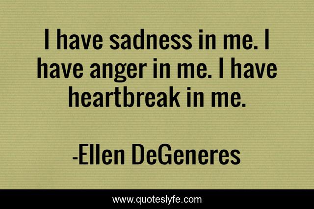 This page presents the quote "I have sadness in me. I have anger in me. I have heartbreak in me.". Author of this quote is Ellen DeGeneres. This quote is about me, sadness, heartbreak,.