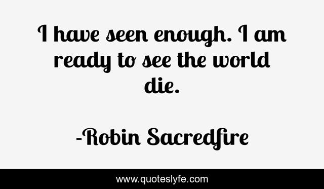 This page presents the quote "I have seen enough. I am ready to see the world die.". Author of this quote is Robin Sacredfire. .