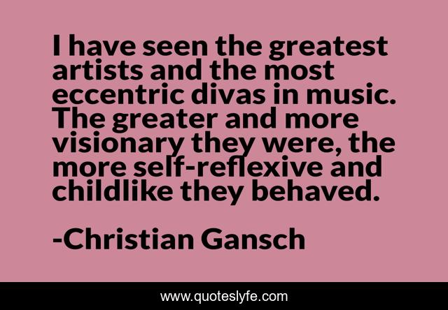 This page presents the quote "I have seen the greatest artists and the most eccentric divas in music. The greater and more visionary they were, the more self-reflexive and childlike they behaved.". Author of this quote is Christian Gansch. .