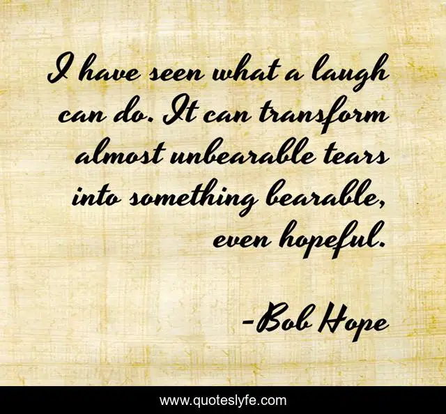 This page presents the quote "I have seen what a laugh can do. It can transform almost unbearable tears into something bearable, even hopeful.". Author of this quote is Bob Hope. This quote is about tears, hopeful, laugh,.