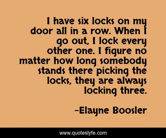 "Elayne Boosler Quotes." Quoteslyfe.com, 2025. Tue. 09 Dec. 2025. <https://www.quoteslyfe.com/quote/I-have-six-locks-on-my-door-317167>.