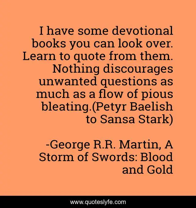 "George R.R. Martin, A Storm of Swords: Blood and Gold Quotes." Quoteslyfe.com, 2025. Sun. 07 Dec. 2025. <https://www.quoteslyfe.com/quote/I-have-some-devotional-books-you-can-90336>.
