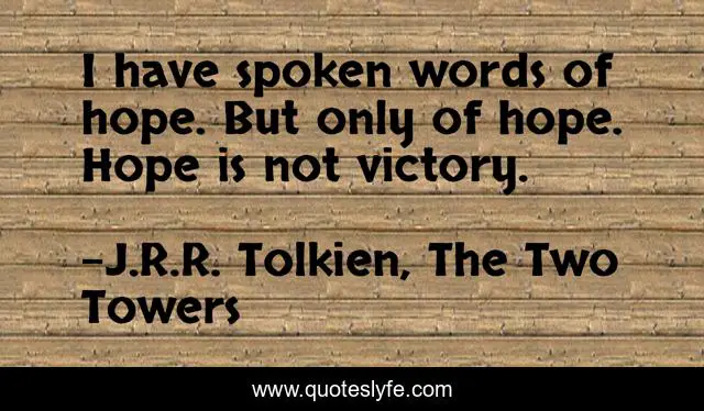 This page presents the quote "I have spoken words of hope. But only of hope. Hope is not victory.". Author of this quote is J.R.R. Tolkien, The Two Towers. .