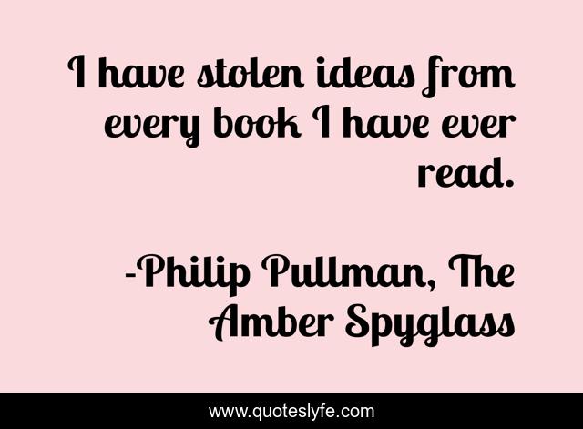"Philip Pullman, The Amber Spyglass Quotes." Quoteslyfe.com, 2025. Sun. 07 Dec. 2025. <https://www.quoteslyfe.com/quote/I-have-stolen-ideas-from-every-book-28322>.