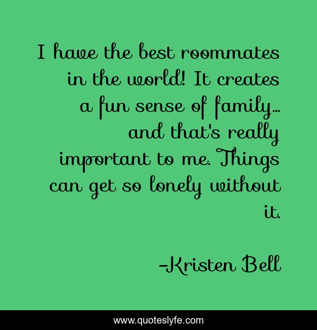 This page presents the quote "I have the best roommates in the world! It creates a fun sense of family... and that's really important to me. Things can get so lonely without it.". Author of this quote is Kristen Bell. This quote is about world, lonely, best,.
