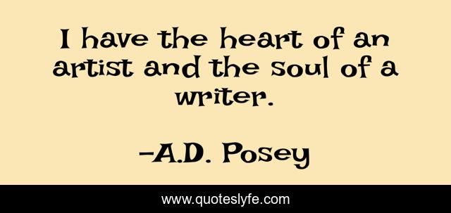 This page presents the quote "I have the heart of an artist and the soul of a writer.". Author of this quote is A.D. Posey. This quote is about heart, storytelling, artist, storytellers, writer, soul, writing, write, writers,.