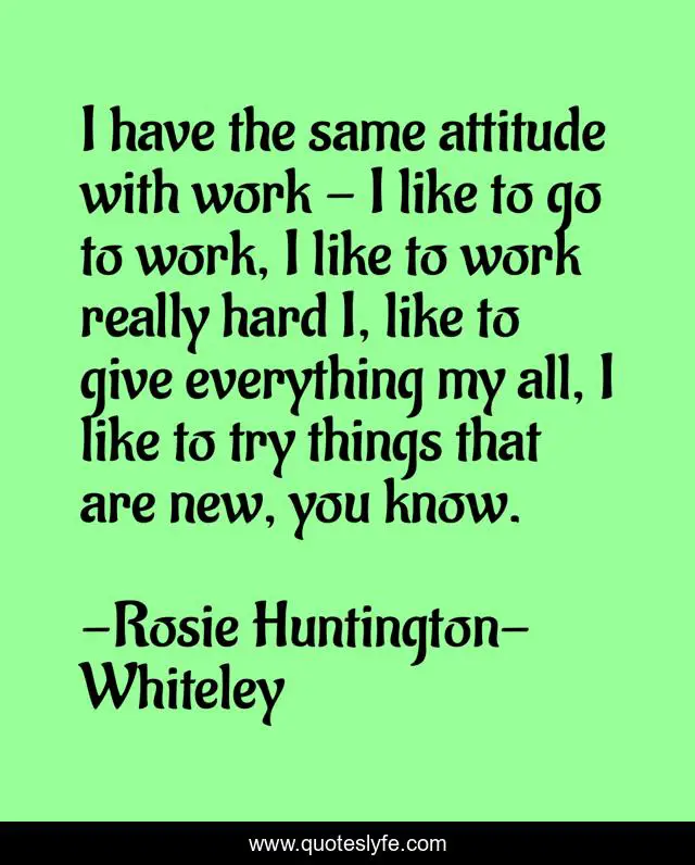 This page presents the quote "I have the same attitude with work - I like to go to work, I like to work really hard I, like to give everything my all, I like to try things that are new, you know.". Author of this quote is Rosie Huntington-Whiteley. .
