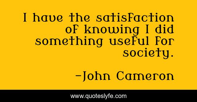 This page presents the quote "I have the satisfaction of knowing I did something useful for society.". Author of this quote is John Cameron. This quote is about knowing, satisfaction,.