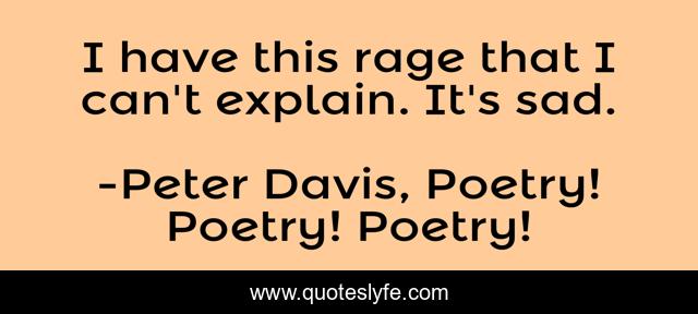 This page presents the quote "I have this rage that I can't explain. It's sad.". Author of this quote is Peter Davis, Poetry! Poetry! Poetry!. This quote is about art, writers, expression,.