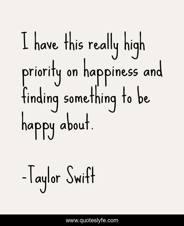 This page presents the quote "I have this really high priority on happiness and finding something to be happy about.". Author of this quote is Taylor Swift. This quote is about finding, be happy, happy,.