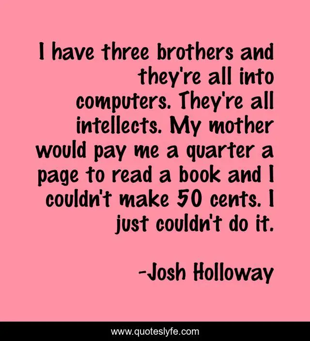 This page presents the quote "I have three brothers and they're all into computers. They're all intellects. My mother would pay me a quarter a page to read a book and I couldn't make 50 cents. I just couldn't do it.". Author of this quote is Josh Holloway. This quote is about me, book, mother,.