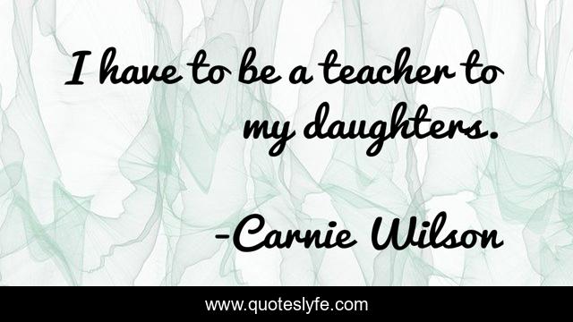 This page presents the quote "I have to be a teacher to my daughters.". Author of this quote is Carnie Wilson. .