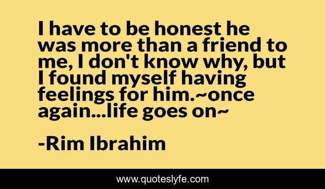This page presents the quote "I have to be honest he was more than a friend to me, I don't know why, but I found myself having feelings for him.~once again...life goes on~". Author of this quote is Rim Ibrahim. .