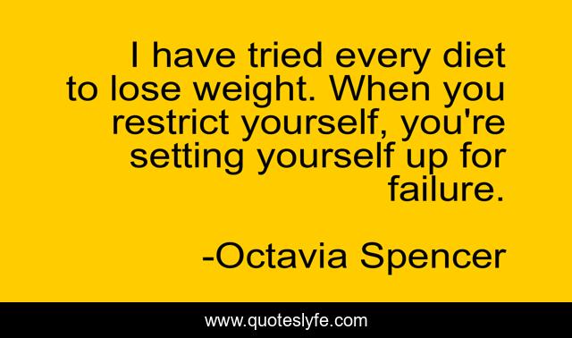 This page presents the quote "I have tried every diet to lose weight. When you restrict yourself, you're setting yourself up for failure.". Author of this quote is Octavia Spencer. This quote is about diet, yourself,.