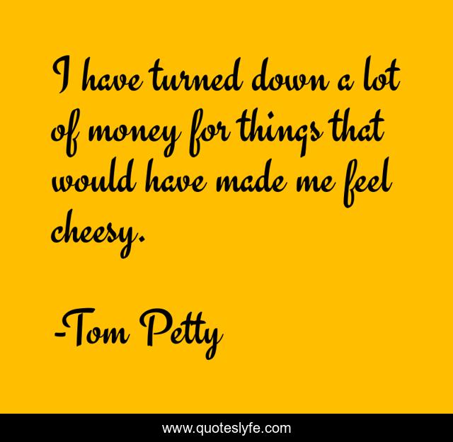 This page presents the quote "I have turned down a lot of money for things that would have made me feel cheesy.". Author of this quote is Tom Petty. This quote is about me, down, cheesy,.