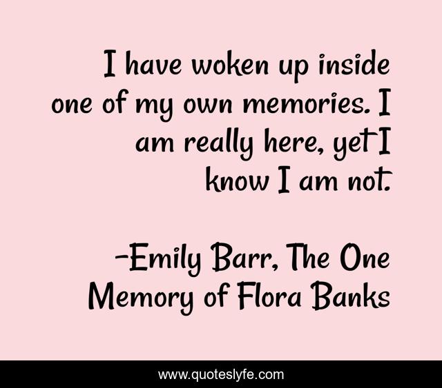 This page presents the quote "I have woken up inside one of my own memories. I am really here, yet I know I am not.". Author of this quote is Emily Barr, The One Memory of Flora Banks. .