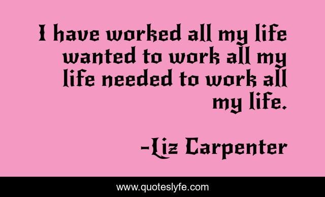 This page presents the quote "I have worked all my life wanted to work all my life needed to work all my life.". Author of this quote is Liz Carpenter. .
