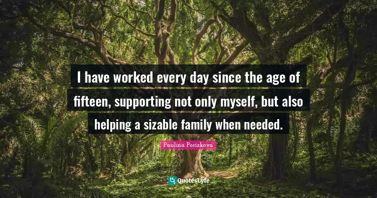 This page presents the quote "I have worked every day since the age of fifteen, supporting not only myself, but also helping a sizable family when needed.". Author of this quote is Paulina Porizkova. This quote is about family, helping, age, fifteen, needed,.