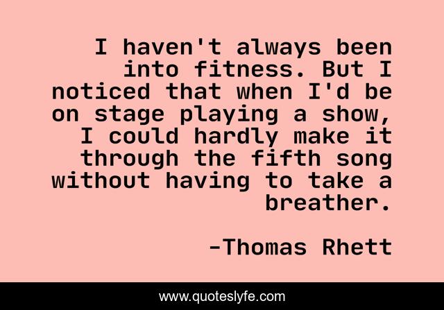 This page presents the quote "I haven't always been into fitness. But I noticed that when I'd be on stage playing a show, I could hardly make it through the fifth song without having to take a breather.". Author of this quote is Thomas Rhett. This quote is about always, through, song,.