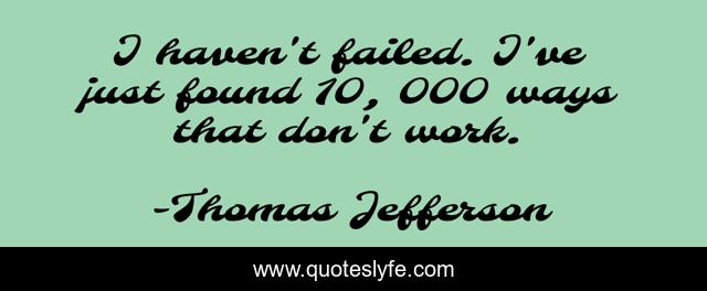 This page presents the quote "I haven't failed. I've just found 10, 000 ways that don't work.". Author of this quote is Thomas Jefferson. This quote is about failure, success,.