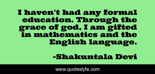 This page presents the quote "I haven't had any formal education. Through the grace of god, I am gifted in mathematics and the English language.". Author of this quote is Shakuntala Devi. This quote is about god, mathematics,.