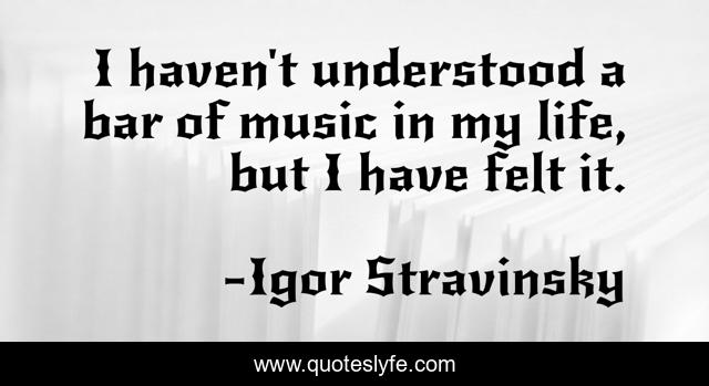 This page presents the quote "I haven't understood a bar of music in my life, but I have felt it.". Author of this quote is Igor Stravinsky. This quote is about stravinsky, music,.