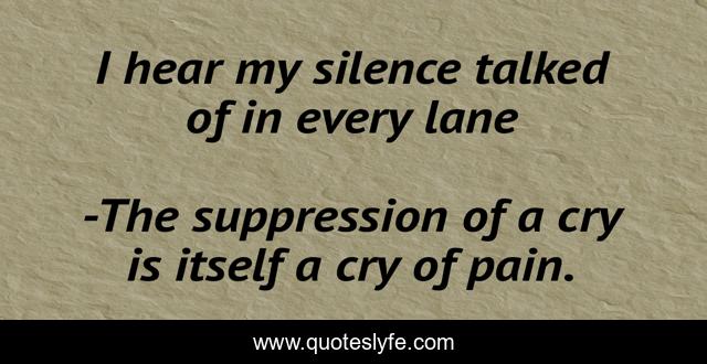 This page presents the quote "I hear my silence talked of in every lane". Author of this quote is The suppression of a cry is itself a cry of pain.. .