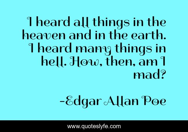 This page presents the quote "I heard all things in the heaven and in the earth. I heard many things in hell. How, then, am I mad?". Author of this quote is Edgar Allan Poe. .