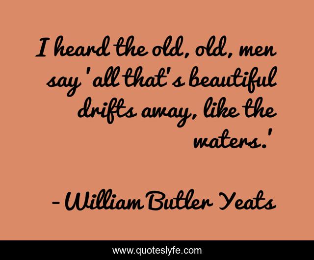This page presents the quote "I heard the old, old, men say 'all that's beautiful drifts away, like the waters.'". Author of this quote is William Butler Yeats. This quote is about beautiful, men,.