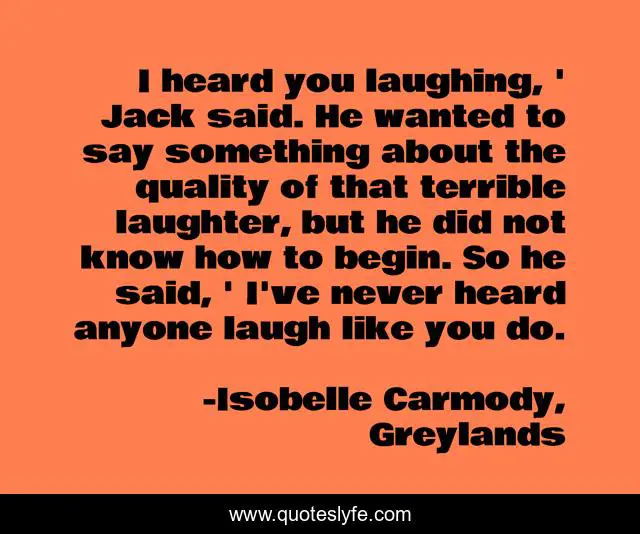This page presents the quote "I heard you laughing, ' Jack said. He wanted to say something about the quality of that terrible laughter, but he did not know how to begin. So he said, ' I've never heard anyone laugh like you do.". Author of this quote is Isobelle Carmody, Greylands. .