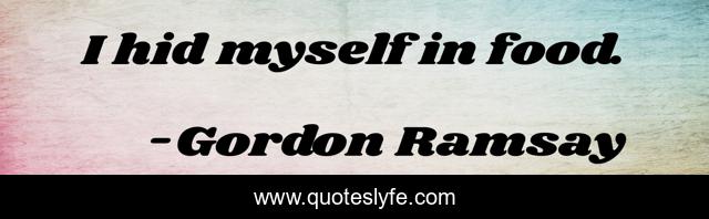 This page presents the quote "I hid myself in food.". Author of this quote is Gordon Ramsay. This quote is about myself, hid,.