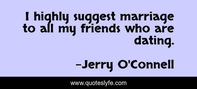 This page presents the quote "I highly suggest marriage to all my friends who are dating.". Author of this quote is Jerry O'Connell. This quote is about marriage, friends,.