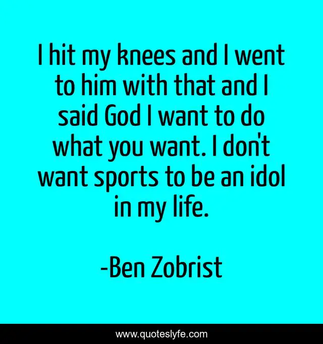 This page presents the quote "I hit my knees and I went to him with that and I said God I want to do what you want. I don't want sports to be an idol in my life.". Author of this quote is Ben Zobrist. This quote is about god, life, my life,.