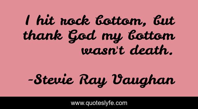 This page presents the quote "I hit rock bottom, but thank God my bottom wasn't death.". Author of this quote is Stevie Ray Vaughan. This quote is about god, thank god, rock,.