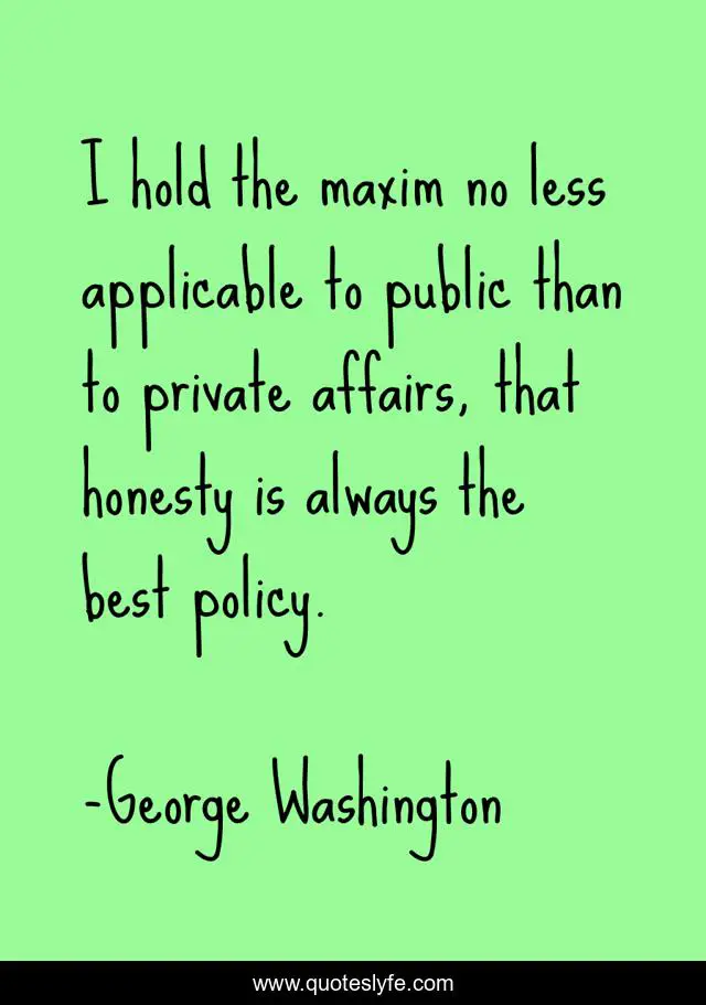 This page presents the quote "I hold the maxim no less applicable to public than to private affairs, that honesty is always the best policy.". Author of this quote is George Washington. .
