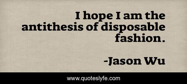 This page presents the quote "I hope I am the antithesis of disposable fashion.". Author of this quote is Jason Wu. This quote is about fashion, disposable,.