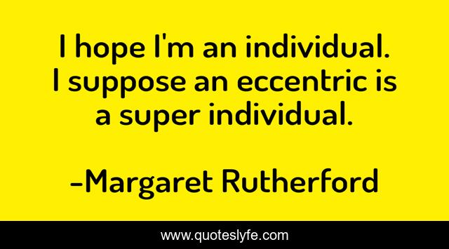 This page presents the quote "I hope I'm an individual. I suppose an eccentric is a super individual.". Author of this quote is Margaret Rutherford. This quote is about eccentric, individual, super,.