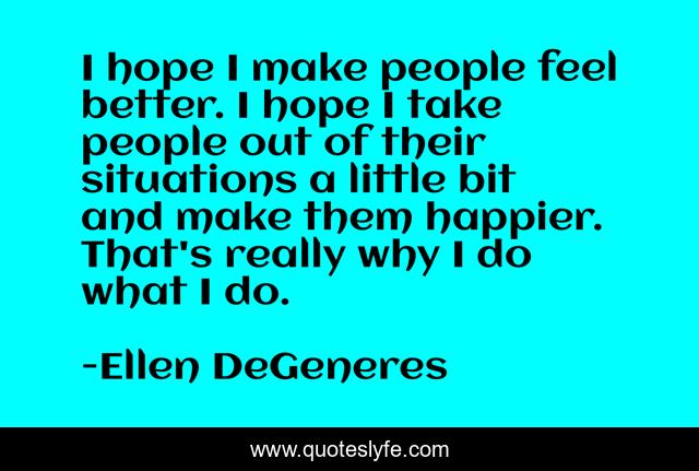 "Ellen DeGeneres Quotes." Quoteslyfe.com, 2025. Sat. 06 Dec. 2025. <https://www.quoteslyfe.com/quote/I-hope-I-make-people-feel-better-19480>.