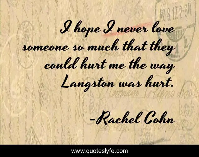 This page presents the quote "I hope I never love someone so much that they could hurt me the way Langston was hurt.". Author of this quote is Rachel Cohn. .