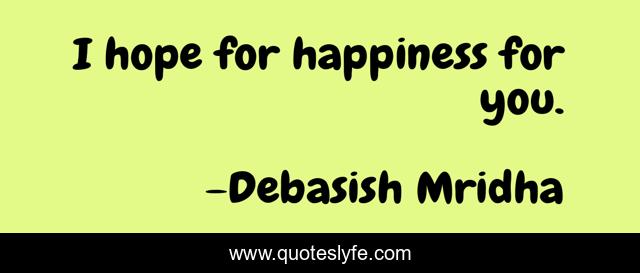 This page presents the quote "I hope for happiness for you.". Author of this quote is Debasish Mridha. This quote is about philosophy, debasish-mridha, quotes, hope, inspirational, enthusiasm, debasish-mridha-m-d, happiness,.