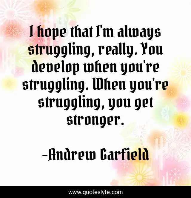 This page presents the quote "I hope that I'm always struggling, really. You develop when you're struggling. When you're struggling, you get stronger.". Author of this quote is Andrew Garfield. This quote is about always, stronger,.
