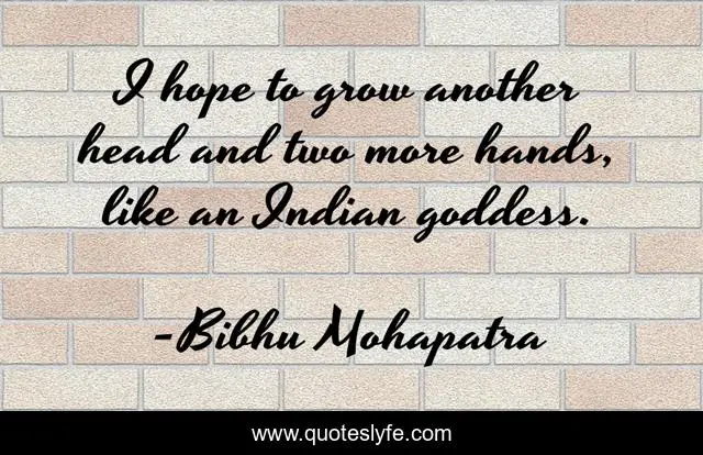 This page presents the quote "I hope to grow another head and two more hands, like an Indian goddess.". Author of this quote is Bibhu Mohapatra. This quote is about head, grow, hands,.