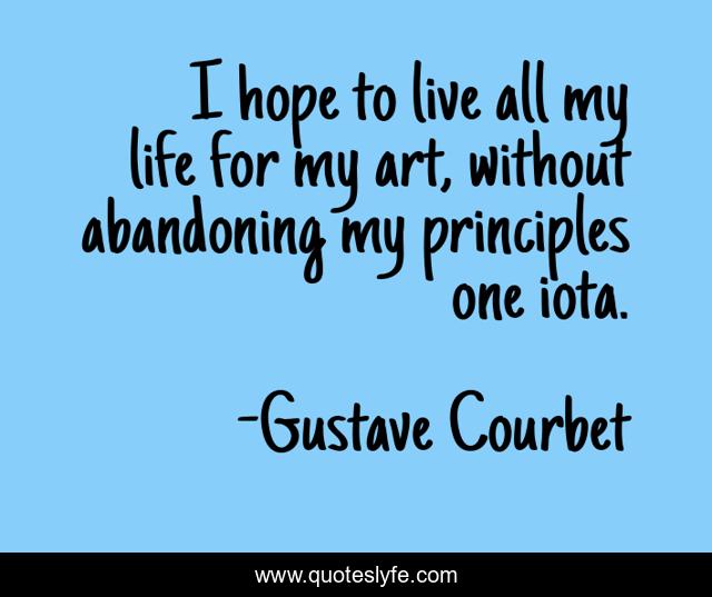 This page presents the quote "I hope to live all my life for my art, without abandoning my principles one iota.". Author of this quote is Gustave Courbet. This quote is about life, live, hope,.