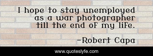 This page presents the quote "I hope to stay unemployed as a war photographer till the end of my life.". Author of this quote is Robert Capa. This quote is about life, end, war,.