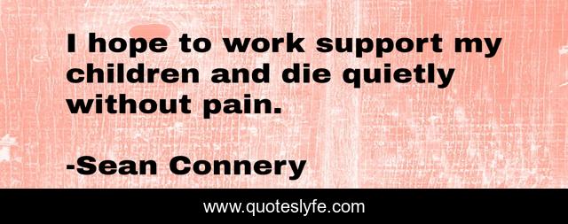 This page presents the quote "I hope to work support my children and die quietly without pain.". Author of this quote is Sean Connery. This quote is about realistic, expectations,.