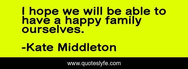 This page presents the quote "I hope we will be able to have a happy family ourselves.". Author of this quote is Kate Middleton. This quote is about family, happy,.