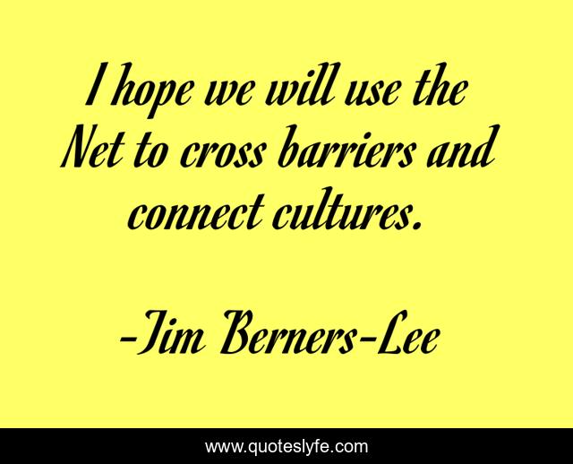 This page presents the quote "I hope we will use the Net to cross barriers and connect cultures.". Author of this quote is Tim Berners-Lee. This quote is about cultures, connect,.